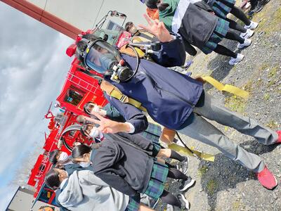 その後は実際に消防車に乗ったり,装備をつけたり様々な体験をさせていただきました。