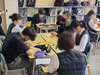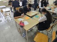今日の6校時は、平和折り鶴まつりに向けた学習と準備でした。