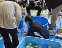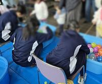 潮中生はえんにちブースのヨーヨーつりを担当。たくさんいらっしゃった来場者の方にあったかい声をかけて、ヨーヨーつりを楽しんでもらえるように頑張りました。ヨーヨーつりに来た子ども達も笑顔いっぱいでした。
