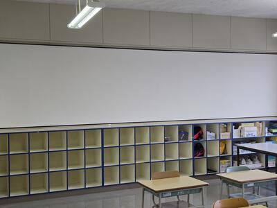 そして、新たにできたつばき教室後方のクロスの張り替え。